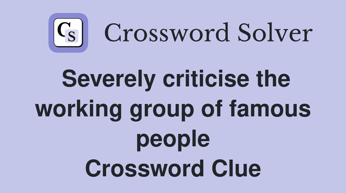 Here is the answer for the crossword clue famous people. We have found 40 possible answers for this clue in our database. There are related clues (shown below). Find synonyms and answers for the 12 letter phrase famous people in crossword puzzles. The crossword solver finds answers to classic.