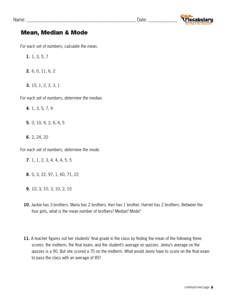 Flocabulary Mean Median Mode PDF