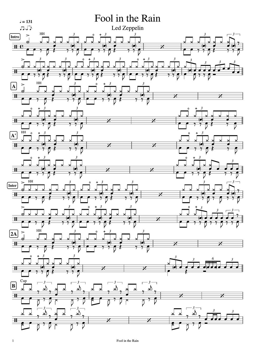 Fool in the rain (complete drums) created date:. Fool in the rain drum tab by led zeppelin. Mf q = 128 iq = q e well there's a 5 light in your eye. K 3 3 3 3 fool in the rain led zeppelin 3. Coda 186 190 194 198 174 170 166 162 158 154 a4.