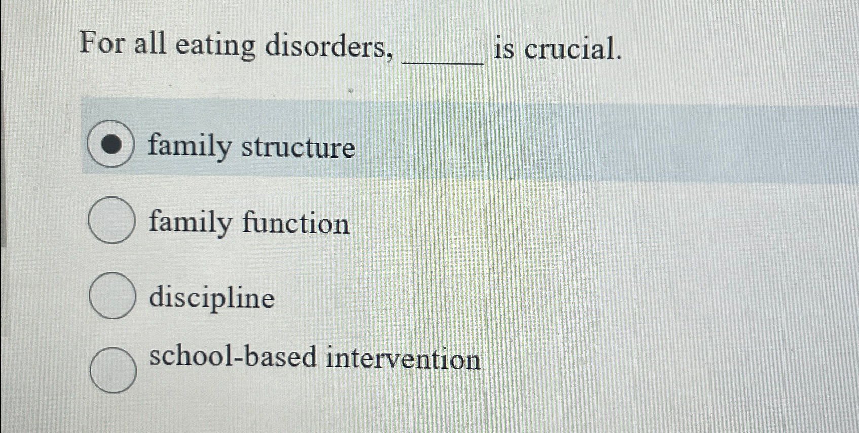 Solved For all eating disorders, is crucial.family