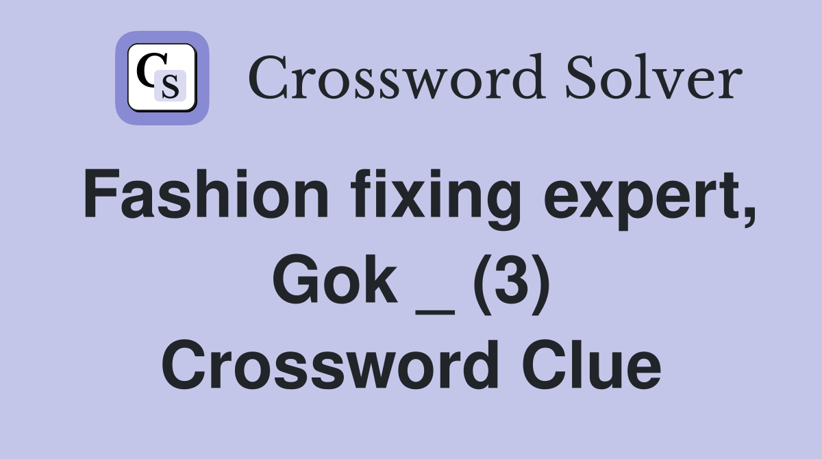 Fashion fixing expert, Gok _ (3) Crossword Clue Answers Crossword
