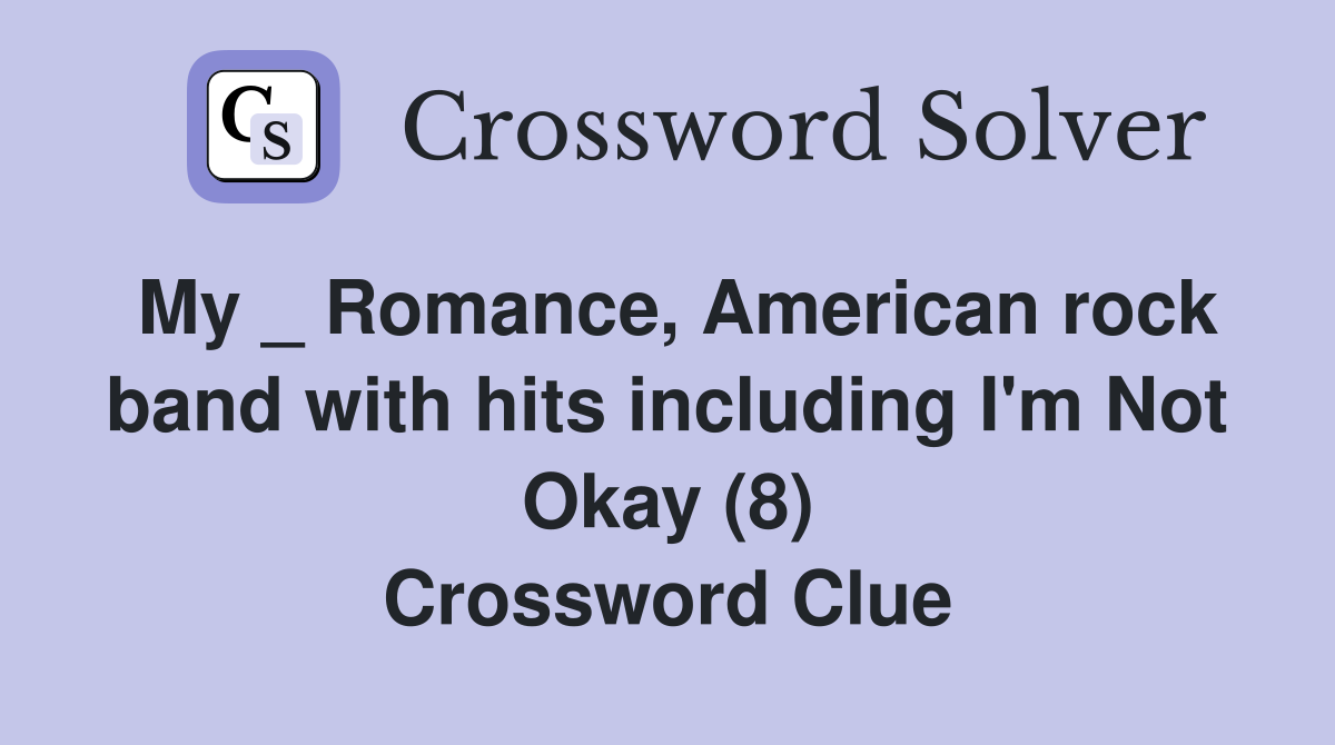 My _ Romance, American rock band with hits including I'm Not Okay (8