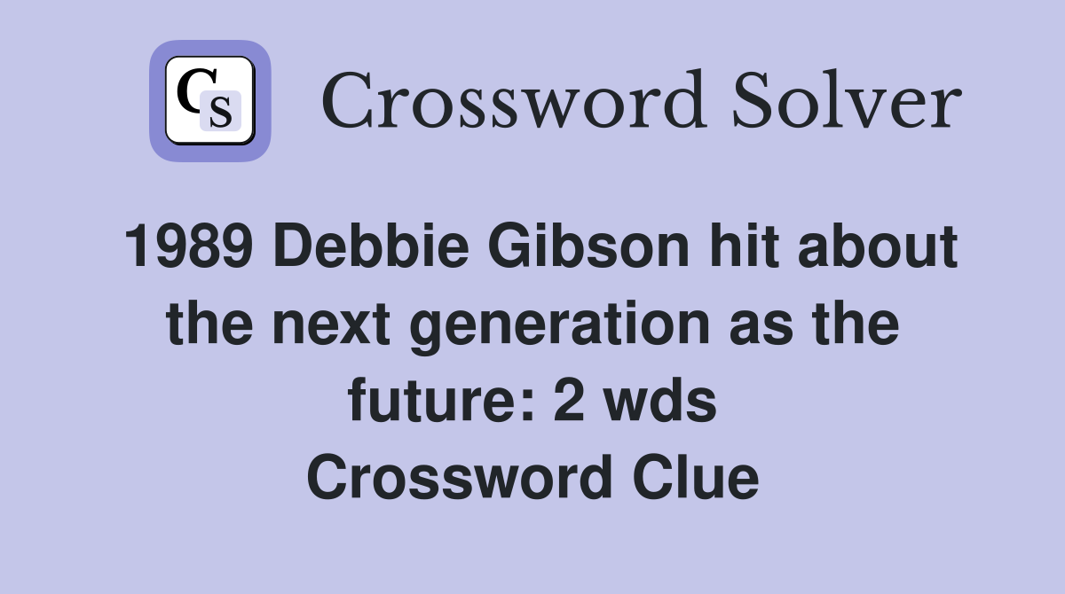 1989 Debbie Gibson hit about the next generation as the future 2 wds