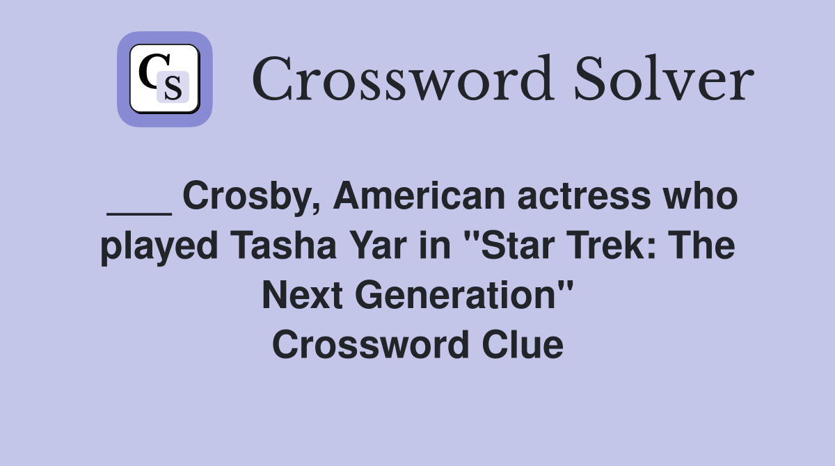 Crosby, American actress who played Tasha Yar in "Star Trek The Next