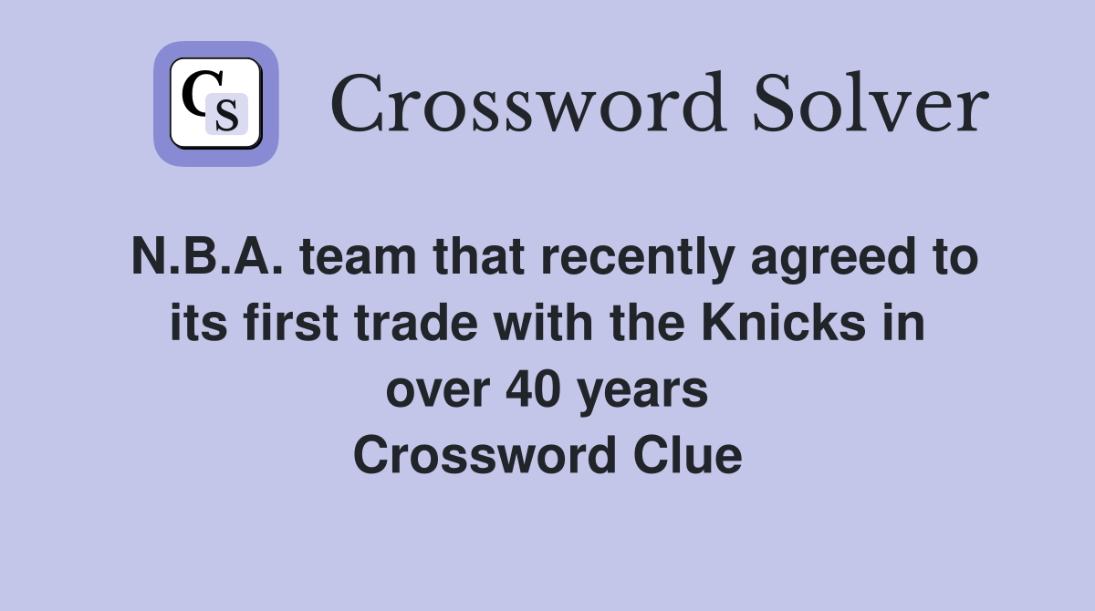 N.B.A. team that recently agreed to its first trade with the Knicks in