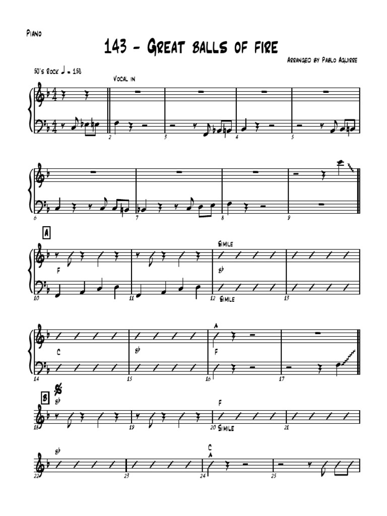 Download pdf sheet music of great balls of fire by jerry lee lewis. Share, download and print free sheet music of great balls of fire jerry lee lewis for piano, guitar, flute and more with the world's largest. Free and easy, high quality pdf on pianotify.