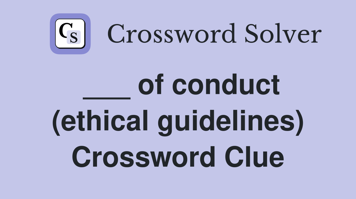 of conduct (ethical guidelines) Crossword Clue Answers Crossword Solver