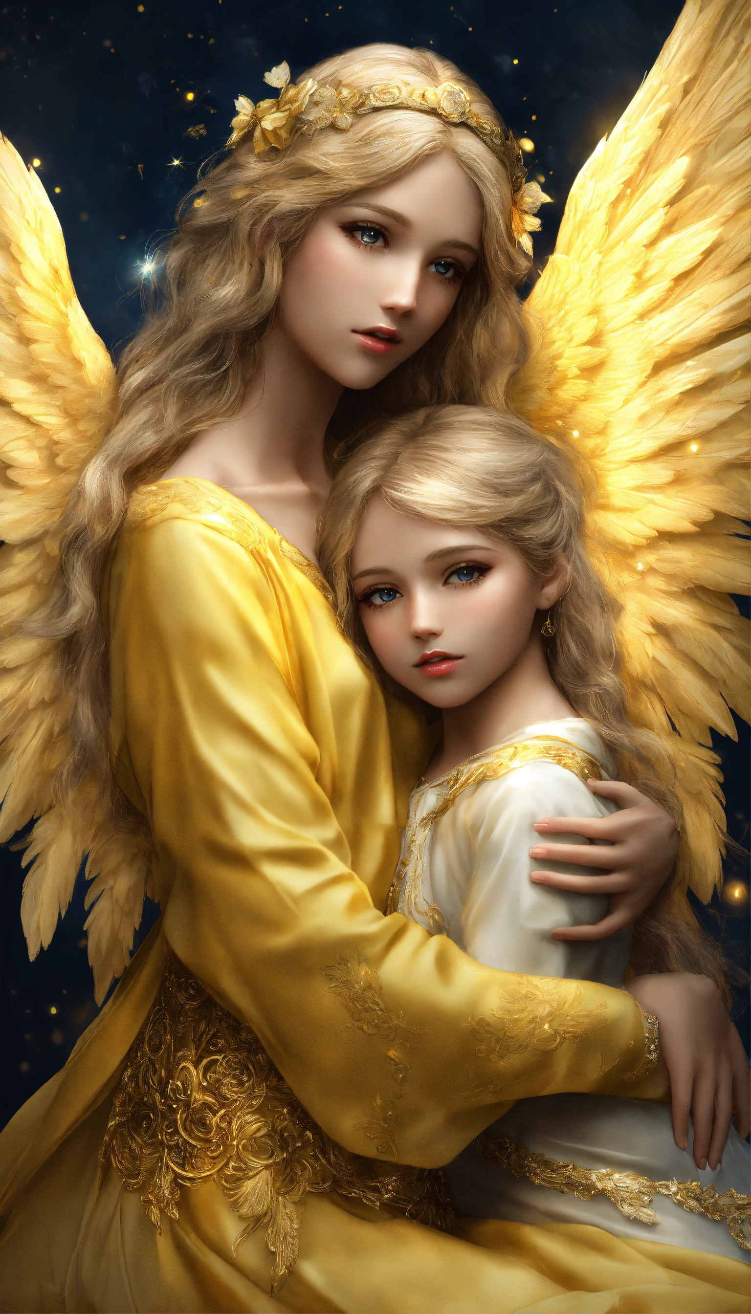 Lexica 2 Guardian angel hugging a beautiful and defined little angel
