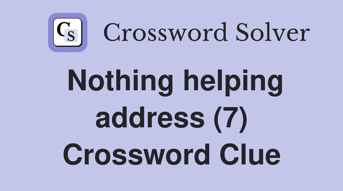 Nothing helping address (7) Crossword Clue Answers Crossword Solver