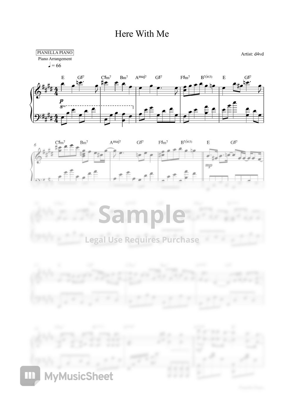 d4vd Here With Me (Piano Sheet) Sheets by Pianella Piano