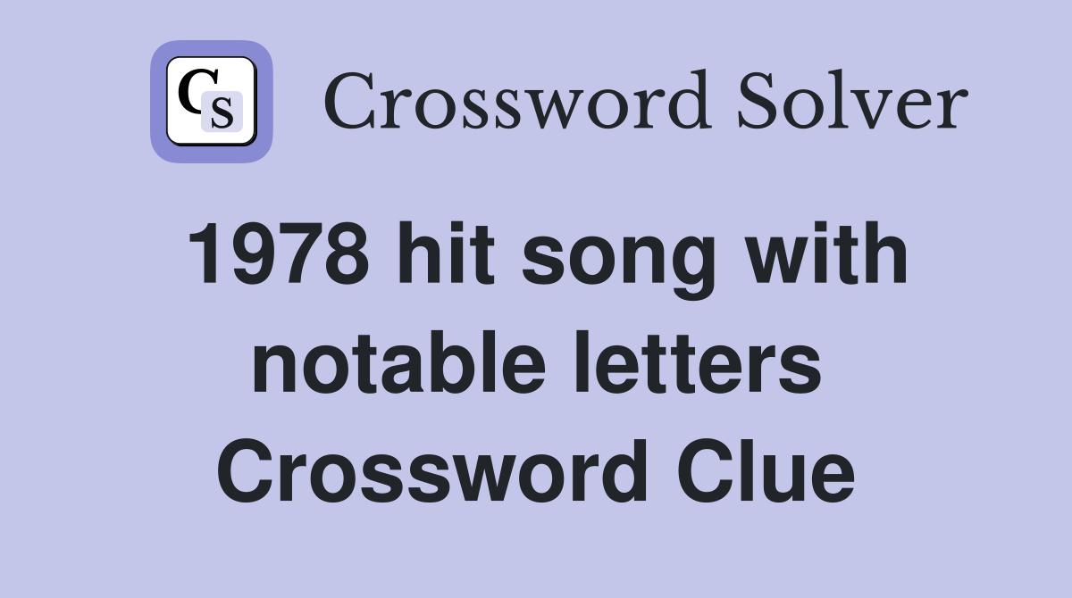 1978 hit song with notable letters Crossword Clue Answers Crossword