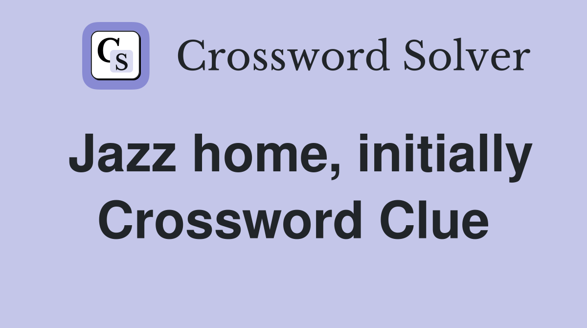 We will try to find the right answer to this particular crossword clue. On this page you will find the jazz home initially crossword puzzle clue answers and solutions. We have found 40 possible answers for this clue in our. Here is the answer for the crossword clue jazz home last seen in la times daily puzzle. Here is the.