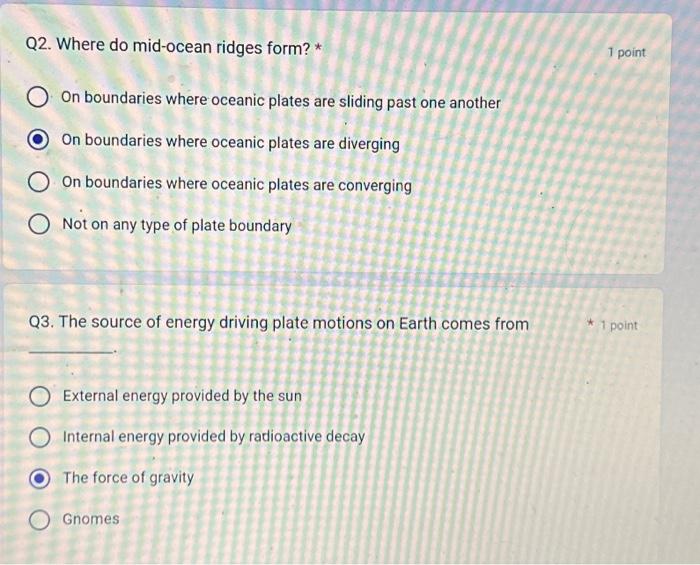 Solved Q2. Where do midocean ridges form? * On boundaries