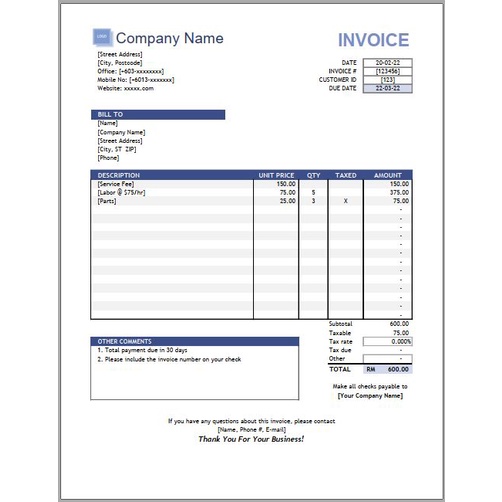 [01] Microsoft Excel Billing Invoice Template Sample / Contoh Template