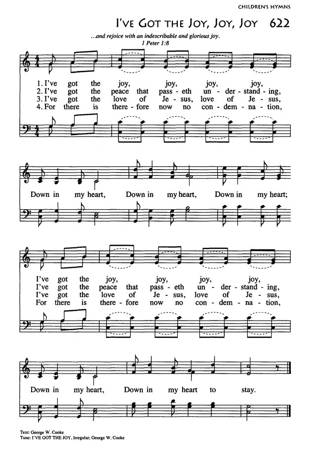 African American Heritage Hymnal 622. I've got the joy, joy, joy, joy