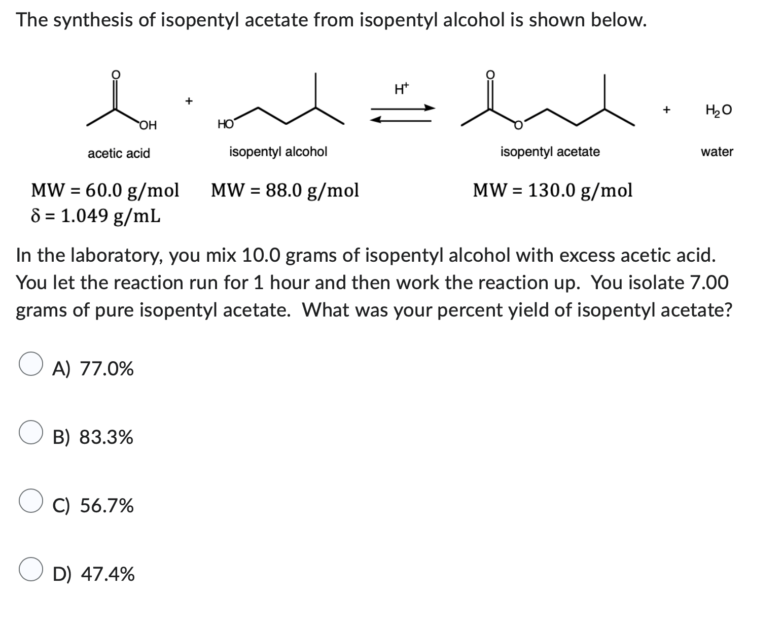 Solved The synthesis of isopentyl acetate from isopentyl