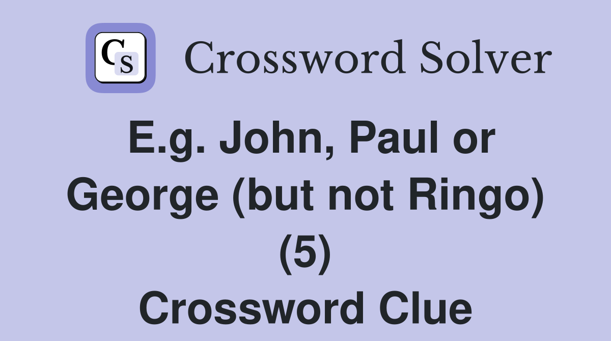 E.g. John, Paul or (but not Ringo) (5) Crossword Clue Answers