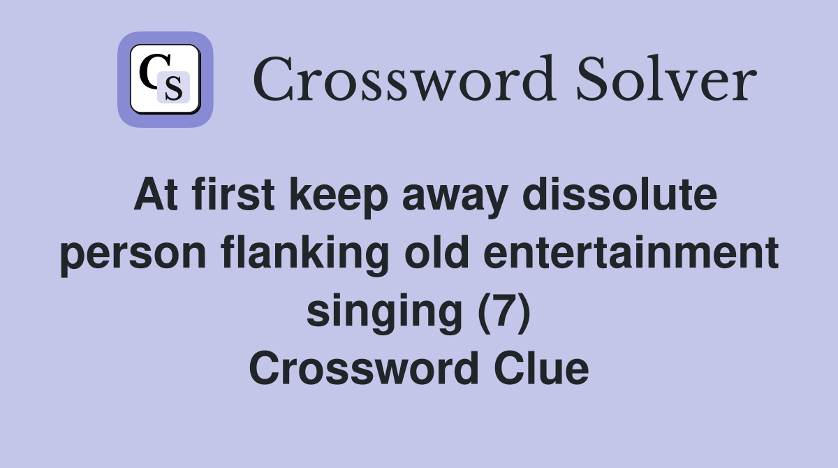 We will try to find the right answer to this particular crossword clue. We will try to find the right answer to this particular. We have found 40 possible answers for this clue in our database. The crossword solver found 30 answers to keep away from others (7), 7 letters crossword clue. The crossword solver finds answers to.