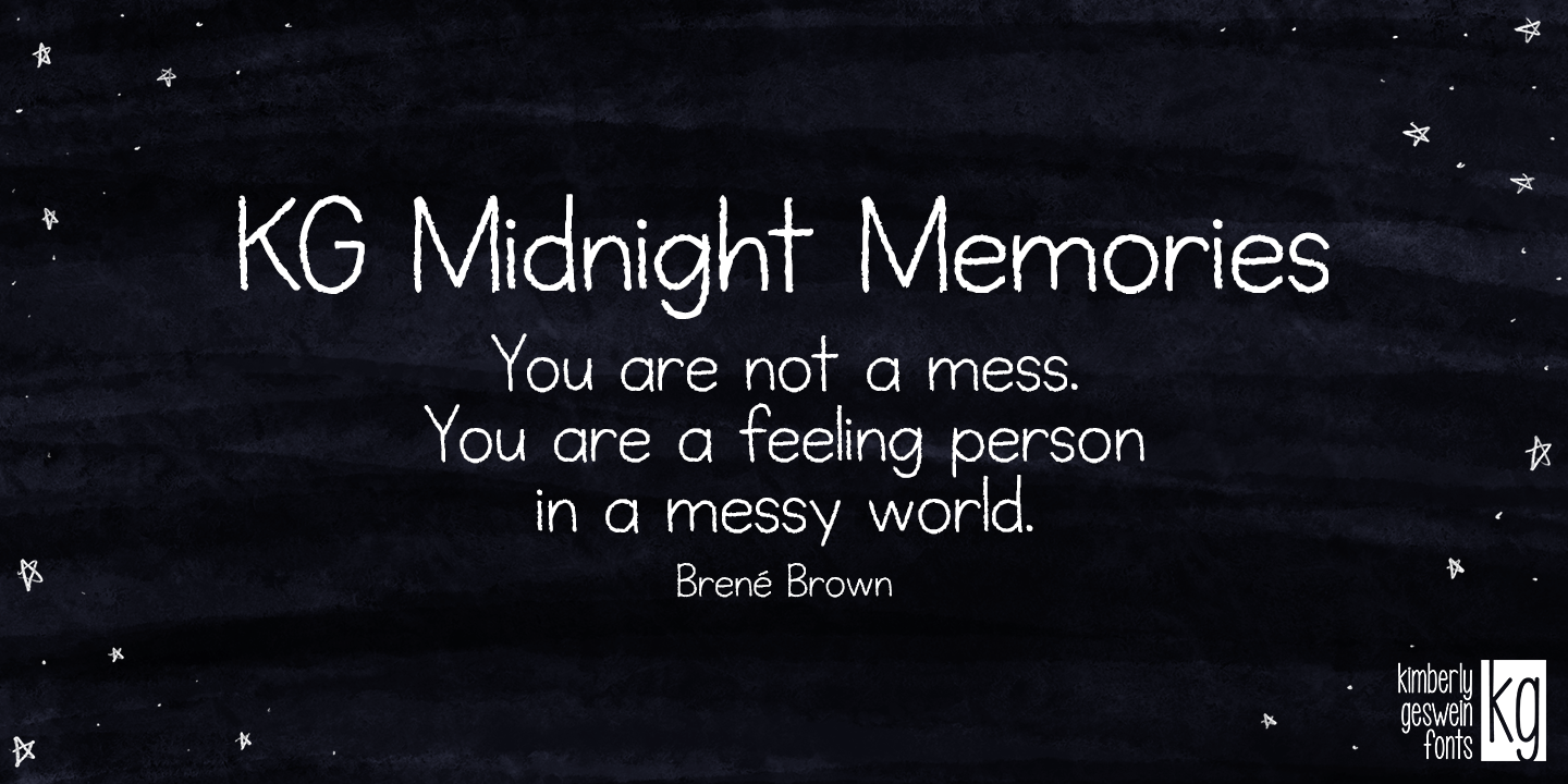 Please license at kimberlygeswein.com for commercial use. Kg midnight memories is a handwritten font created by kimberly geswein in 2021. The typeface contains 1 file and supports 55 languages. Download kg midnight memories regular font. Kg midnight memories is a font.