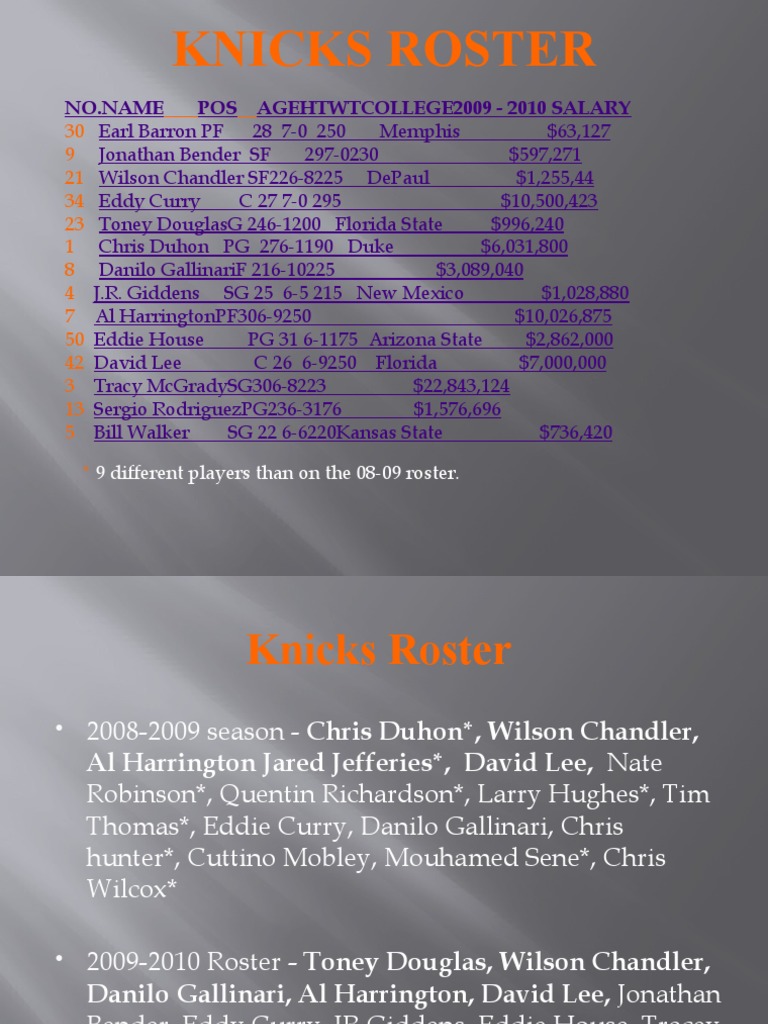 Knicks Roster 2010 - Quick access to players bio, career stats and team records. Eddie house was acquired in a trade by the new york knicks from the boston celtics on february 18, 2010. New york knicks roster and stats.