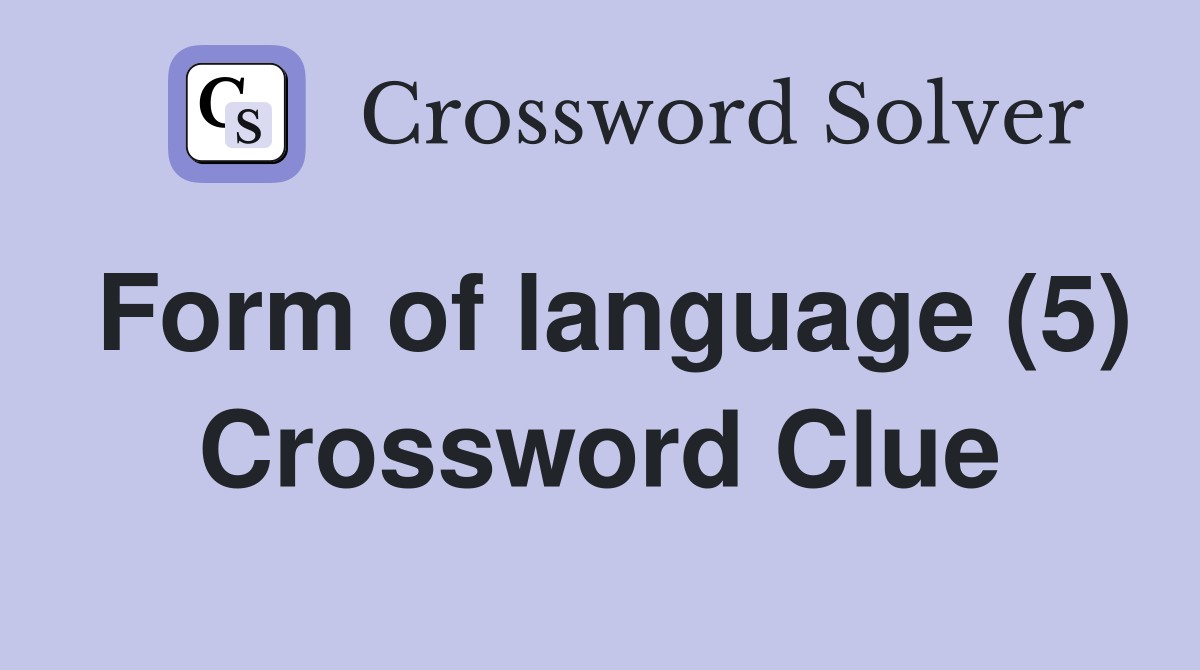 Form of language (5) Crossword Clue Answers Crossword Solver