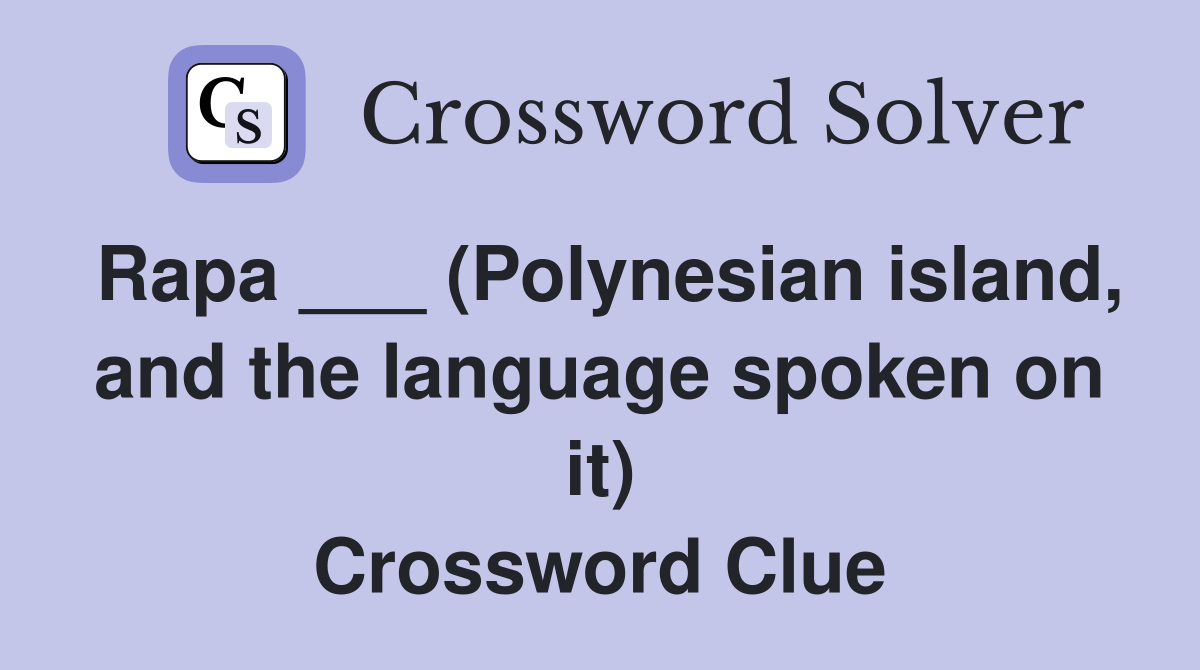 Rapa ___ (Polynesian island, and the language spoken on it) Crossword
