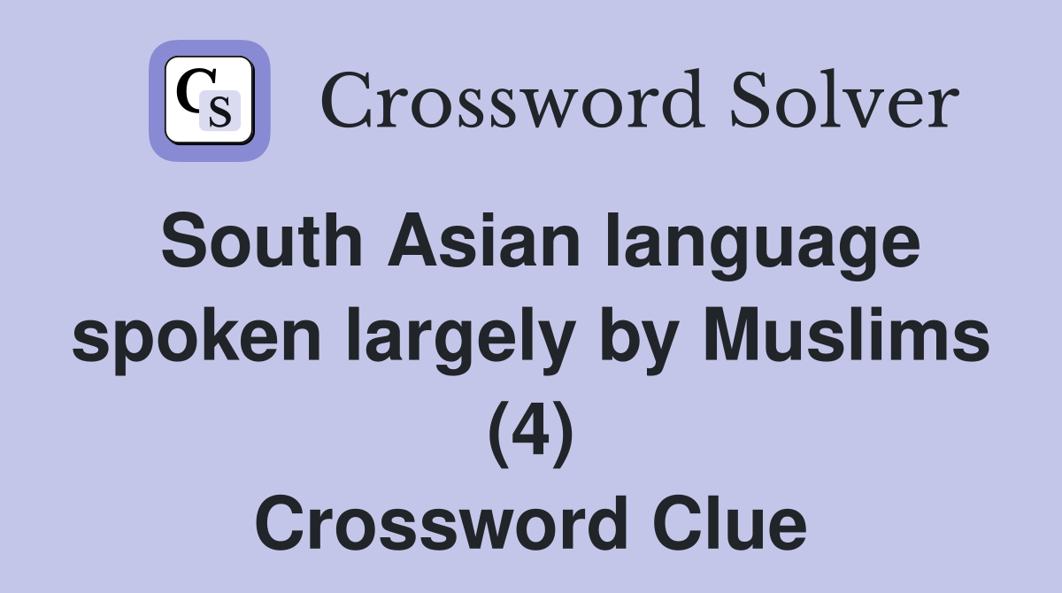 South Asian language spoken largely by Muslims (4) Crossword Clue