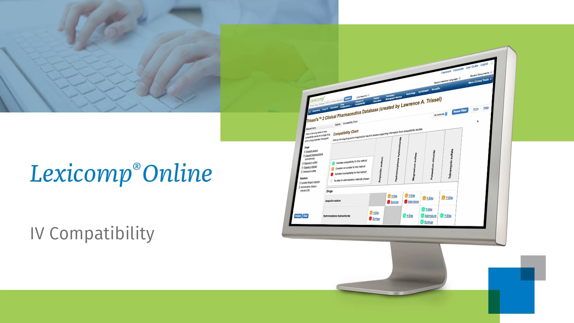 Access trissel's iv compatibility tool via lexicomp extended stability for parenteral drugs by eric george schaefer; Helping healthcare professionals by providing the most trusted drug and clinical information available, delivered across multiple platforms, and easily. Remote access to uptodate lexidrug is available on institutional vpn.