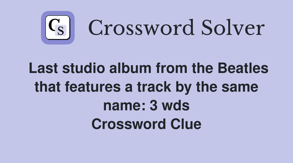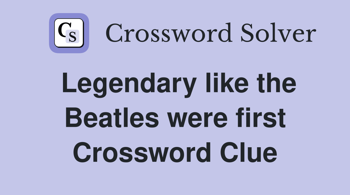 The crossword solver finds answers to classic crosswords and. The list below contains all the. Here are all the possible answers for like the beatles crossword clue which contains 3 letters. We have found 40 possible answers for.