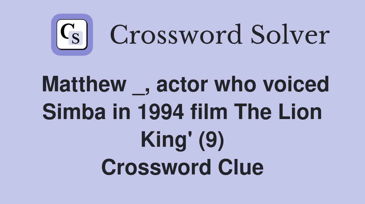 Matthew _, actor who voiced Simba in 1994 film The Lion King' (9