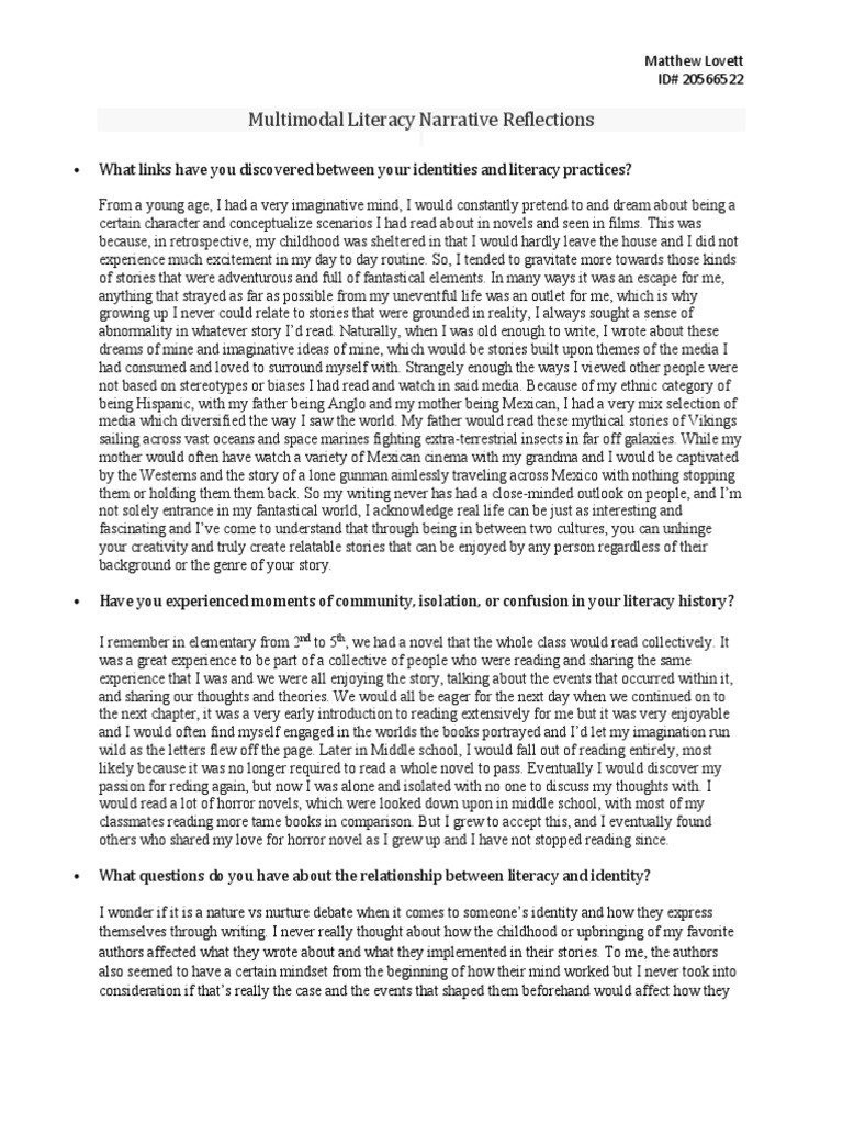 Multimodal Literacy Narrative Reflections PDF Dream