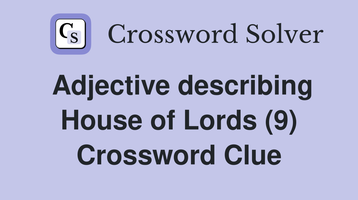Adjective describing House of Lords (9) Crossword Clue Answers