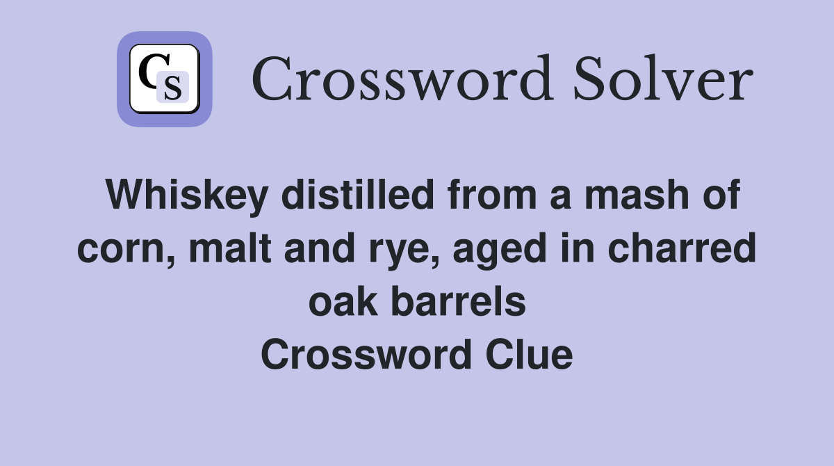 Whiskey distilled from a mash of corn, malt and rye, aged in charred