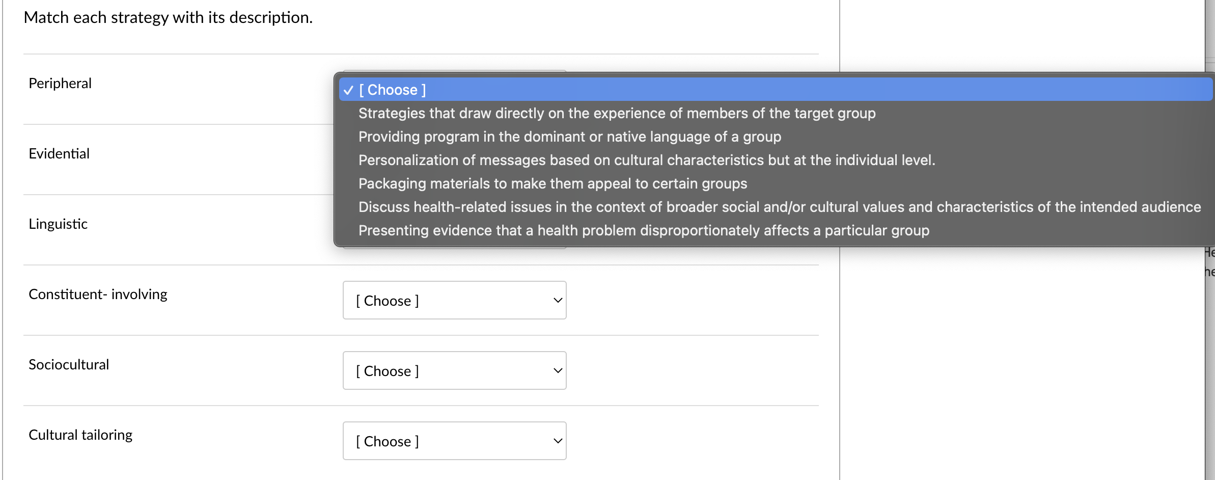 Solved Match each strategy with its description. Peripheral