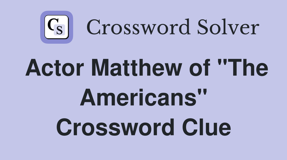The crossword solver finds answers to. This clue last appeared in the nyt crossword on june 30,. Actor matthew of the americans crossword clue answers are listed below. We solved this clue, that last appeared on june 30, 2024 in a n.y.t crossword puzzle and the answer had four letters. We have found 40 possible answers for this clue in.