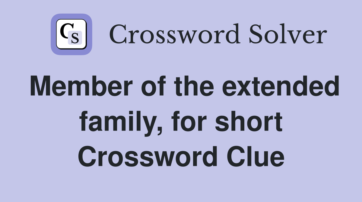 There are a total of 1 crossword puzzles on our site and 68,786 clues. The crossword solver finds answers to classic. The crossword solver found 30 answers to member of the family, 4 letters crossword clue. Here is the answer for the crossword clue member of a family. Today's crossword puzzle clue is a quick one: