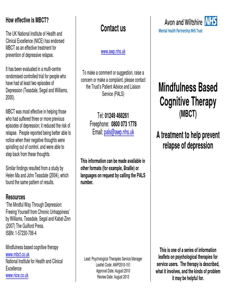 Mindfulness Based Cognitive Therapy (MBCT) Leaflet PDF Mindfulness