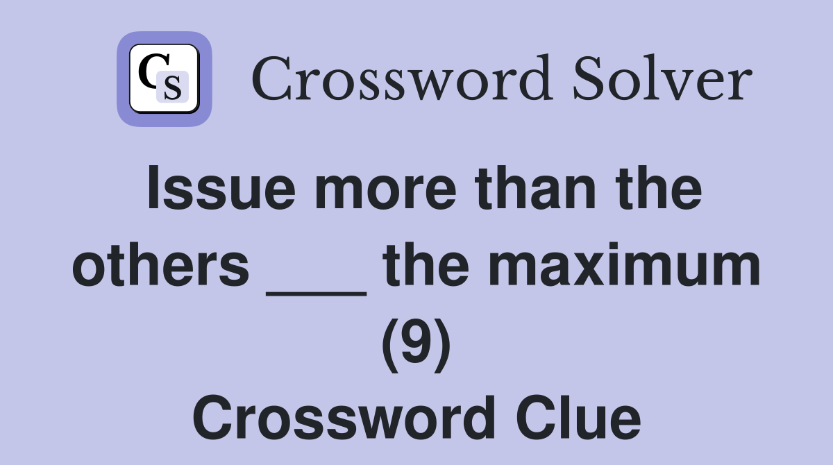 Issue more than the others ___ the maximum (9) Crossword Clue Answers