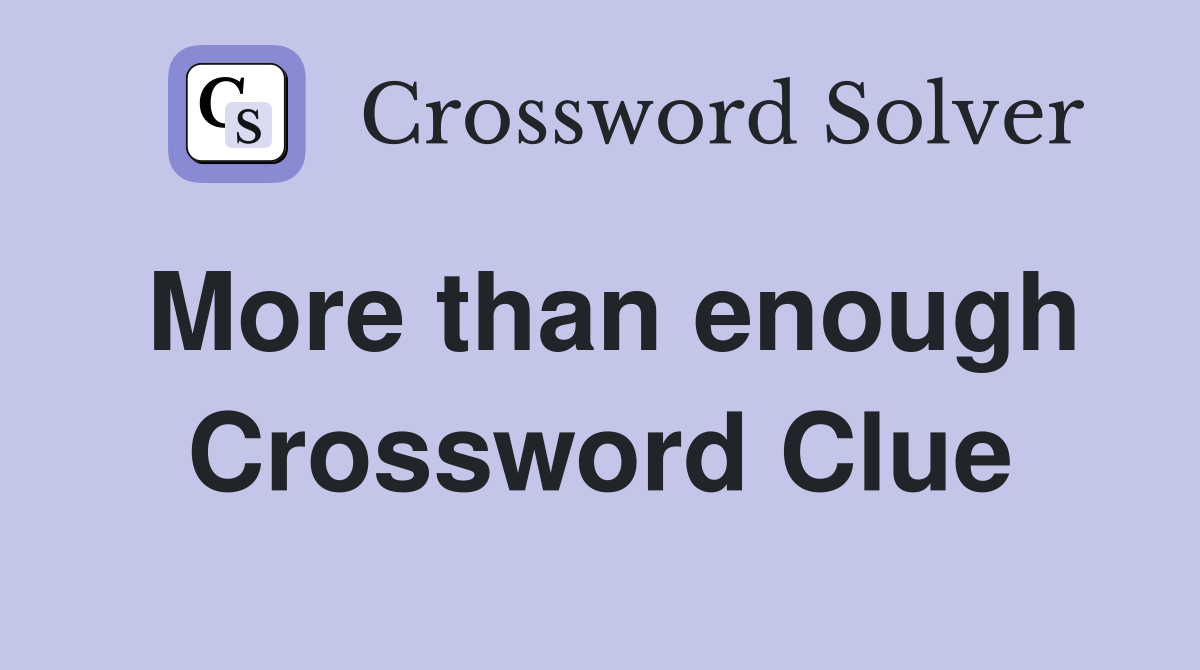 Find The Right Answer To The Crossword Puzzle Clue More Than Sufficient From The Guardian Quick Crossword.