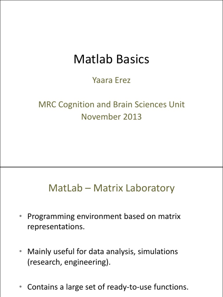 Matlab Basics Yaara Erez MRC Cognition and Brain Sciences Unit