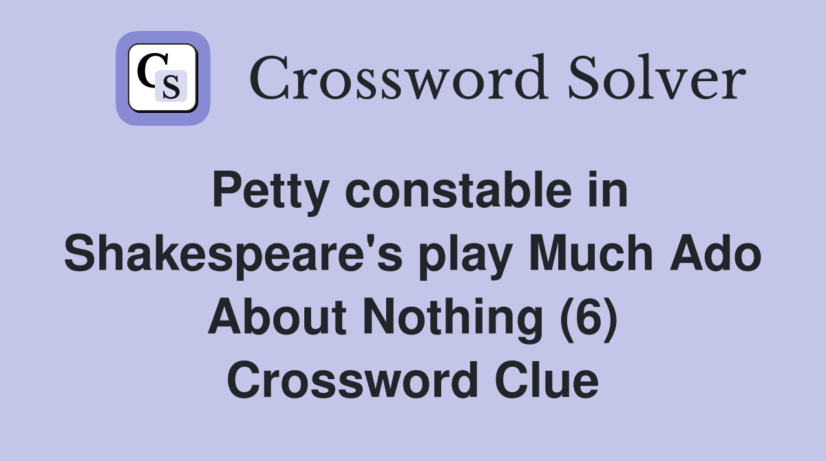 Much ado about nothing role crossword clue answer : For additional clues from the today’s puzzle please use our. If you're still struggling, we have the much ado about nothing role crossword clue answer below. We solved this clue, that last appeared on august 17, 2023 in a n.y.t crossword puzzle and the answer had seven letters.