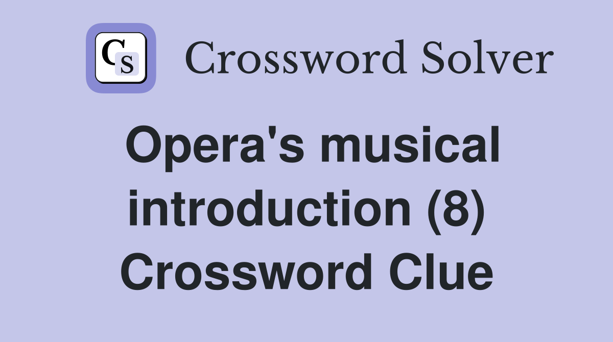 Opera's musical introduction (8) Crossword Clue Answers Crossword