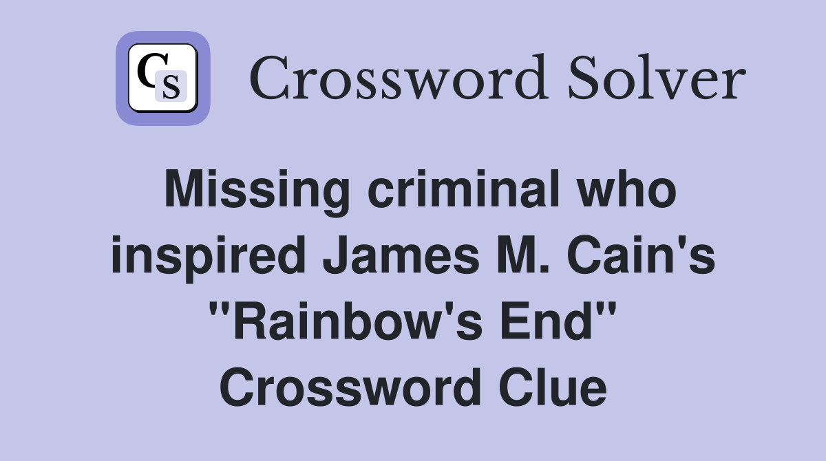 Missing criminal who inspired James M. Cain's "Rainbow's End