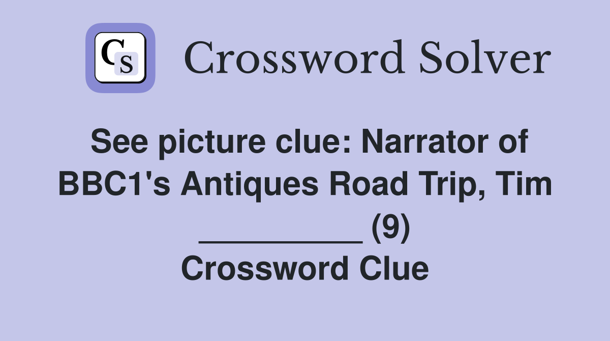 See picture clue Narrator of BBC1's Antiques Road Trip, Tim