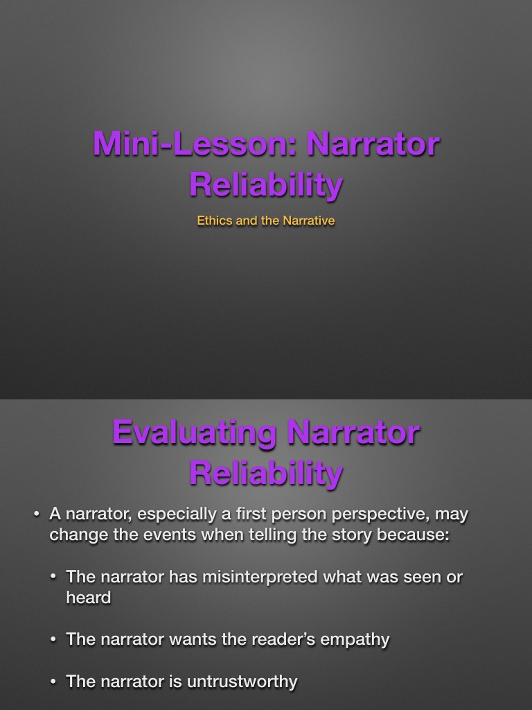 They provide accurate information about the plot, characters,. A reliable narrator presents the story truthfully, allowing readers to trust their account. Reliable narrators provide clear insights into the story, enabling readers to trust their accounts and interpretations. What is a reliable narrator?