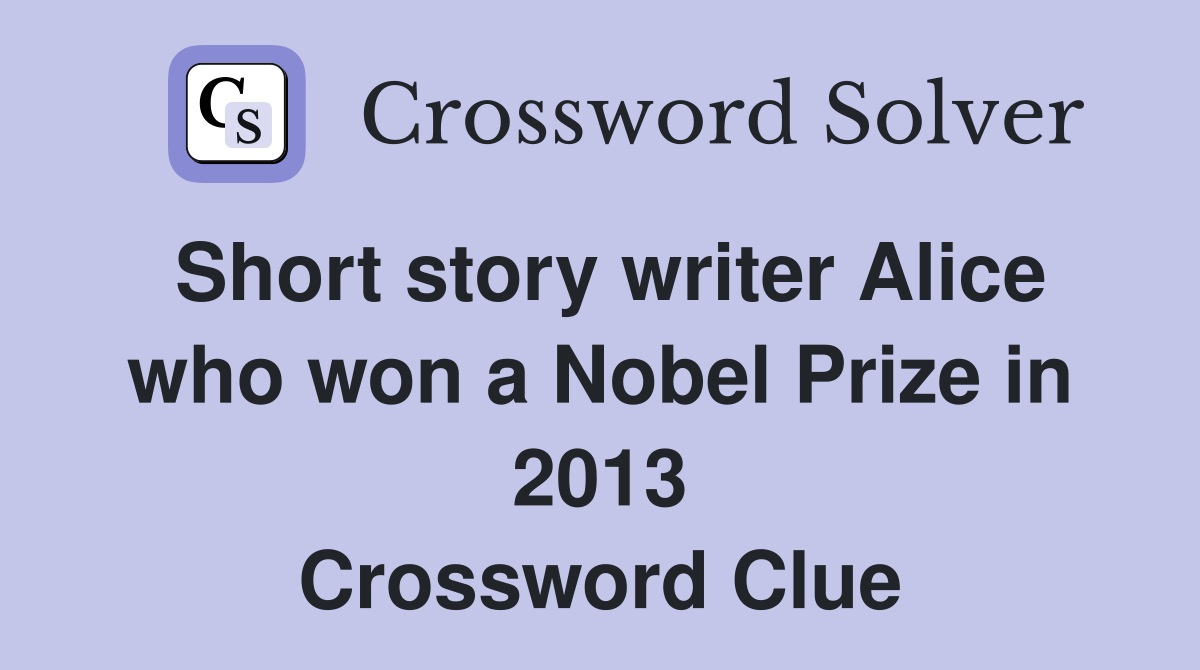 Short story writer Alice who won a Nobel Prize in 2013 Crossword Clue