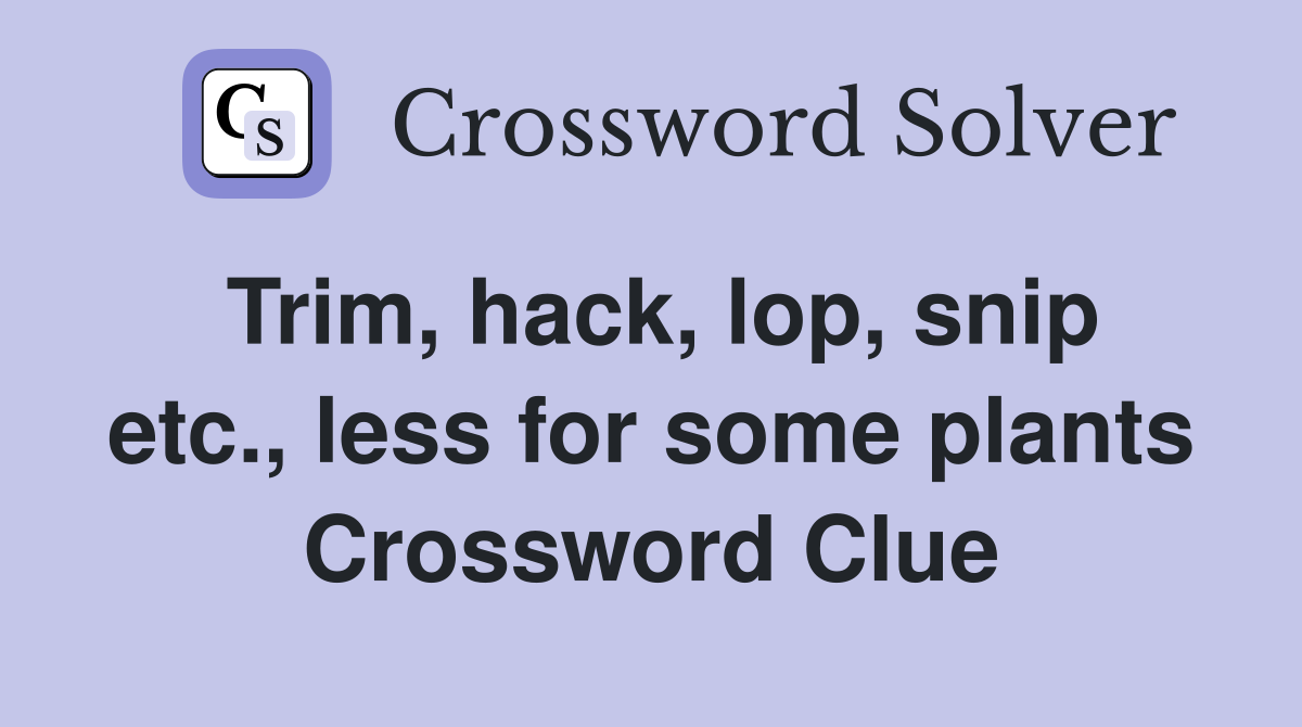 Trim, hack, lop, snip etc., less for some plants Crossword Clue