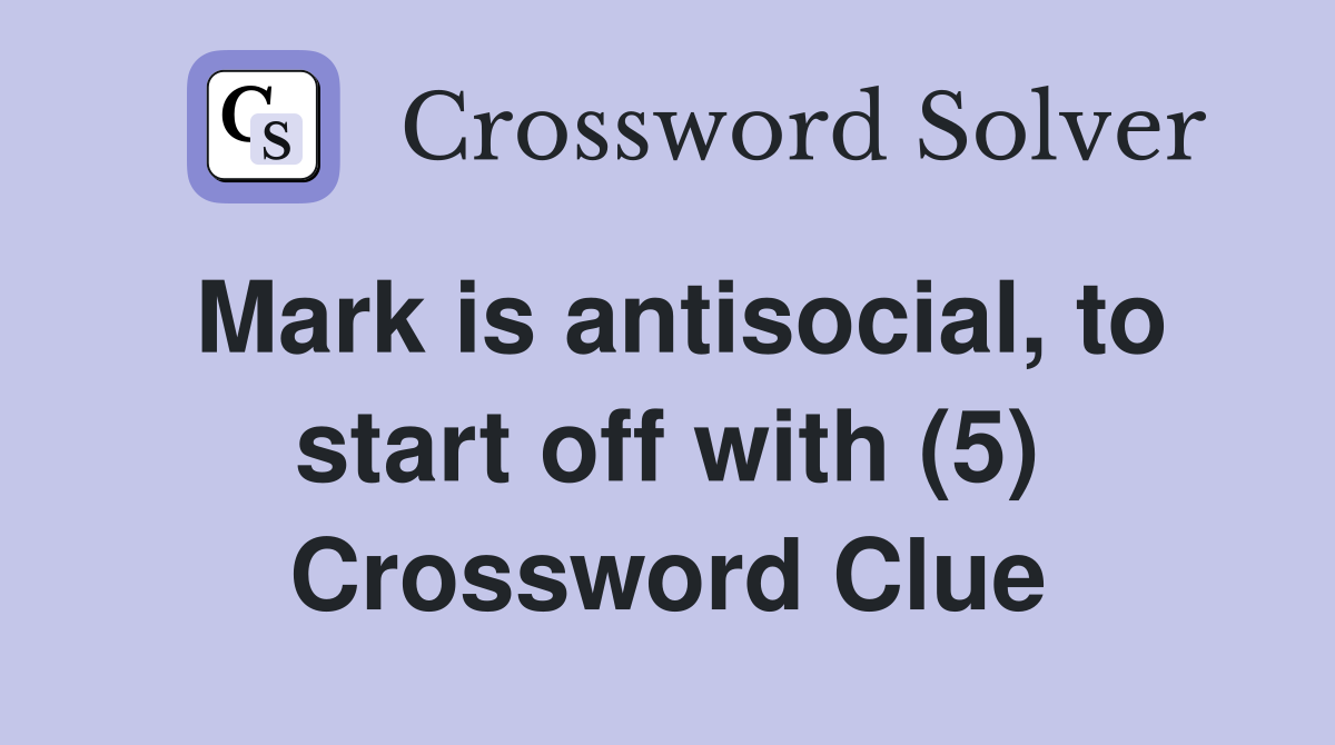 Mark is antisocial, to start off with (5) Crossword Clue Answers