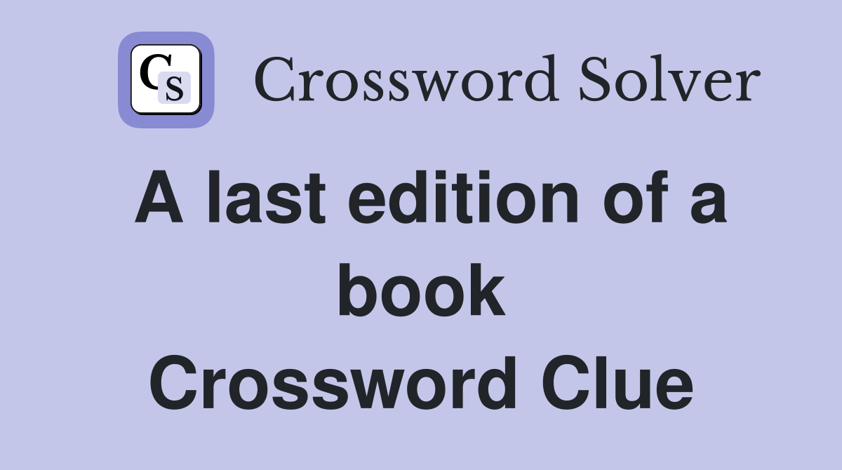 A last edition of a book Crossword Clue Answers Crossword Solver