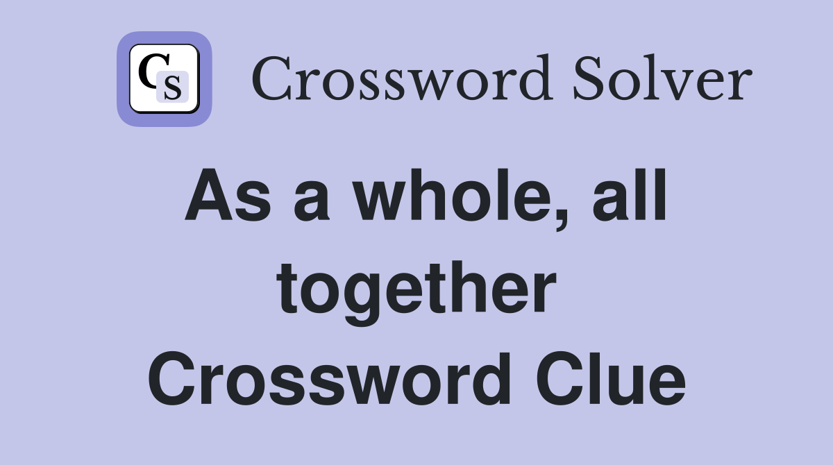 As a whole, all together Crossword Clue Answers Crossword Solver